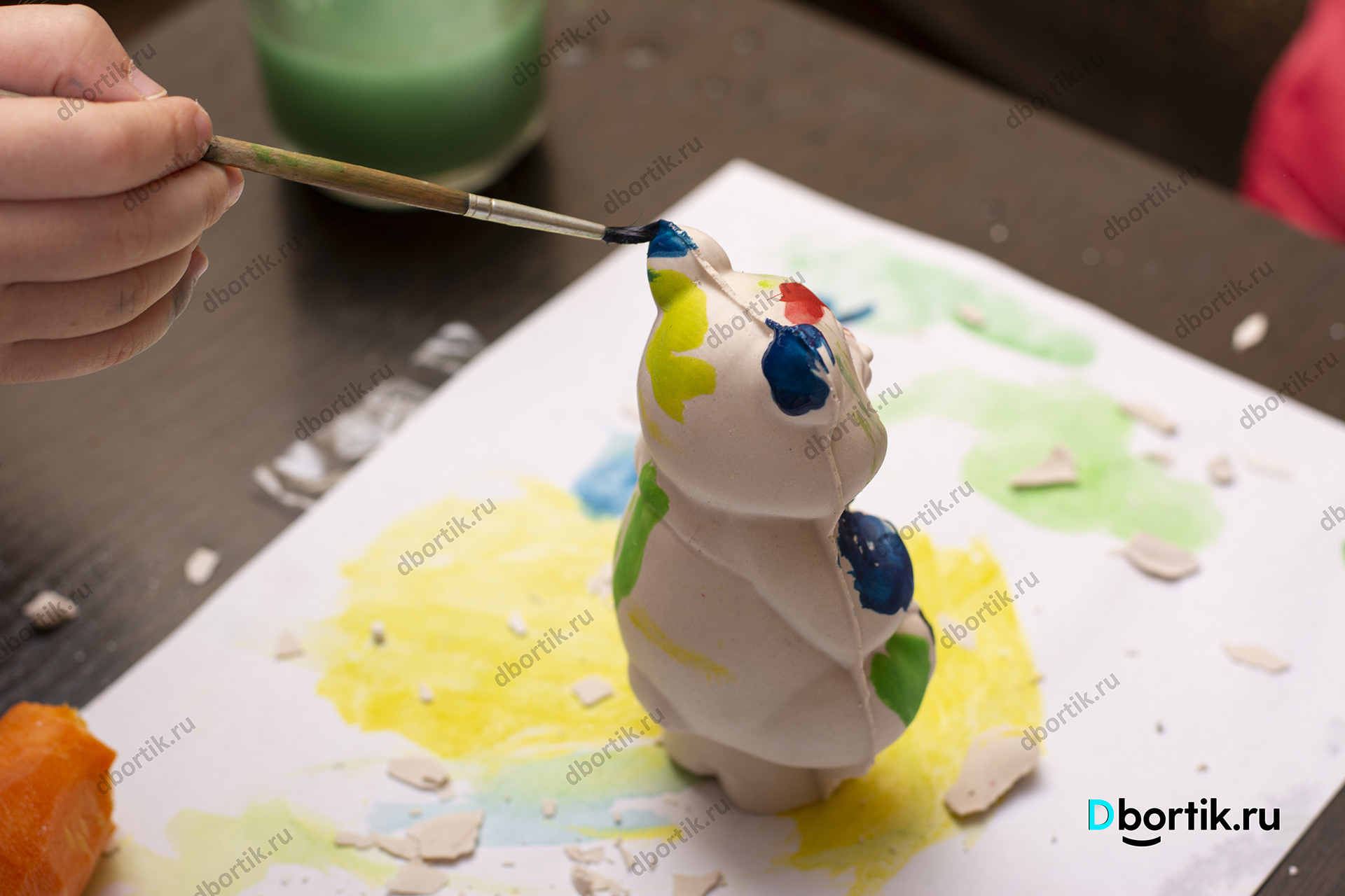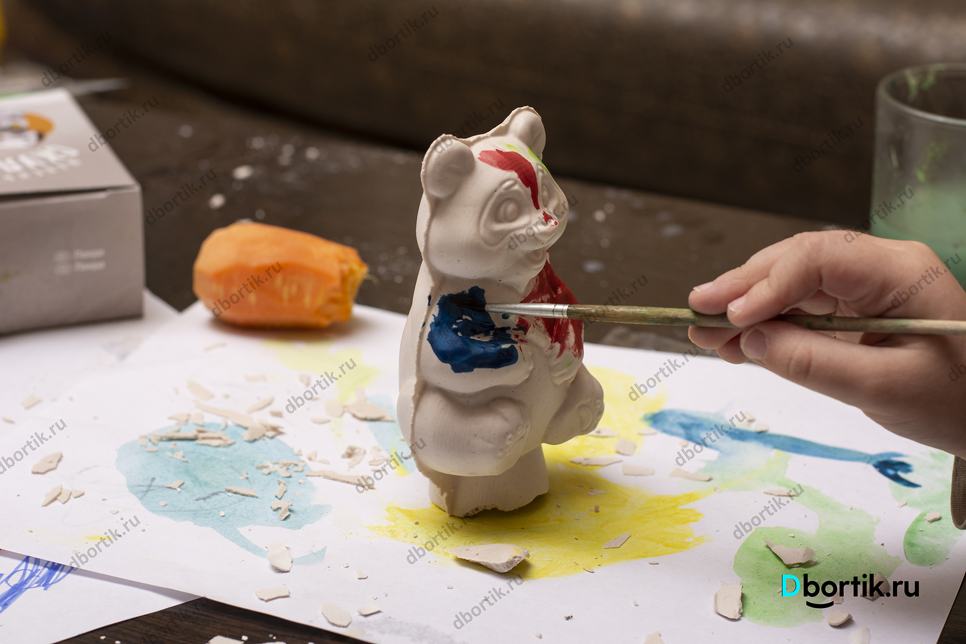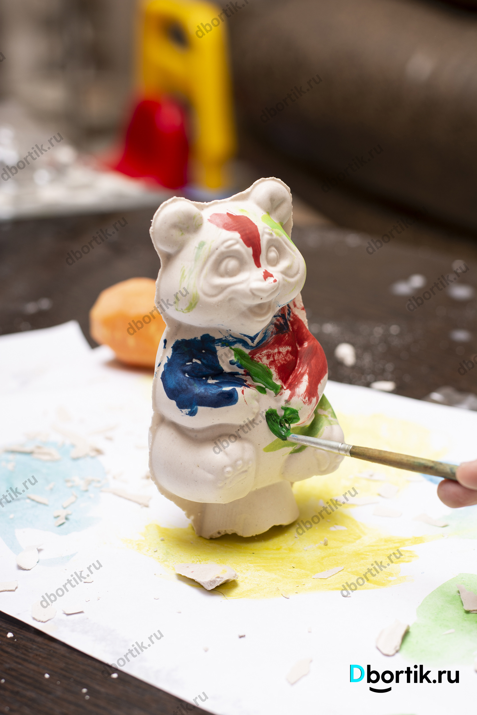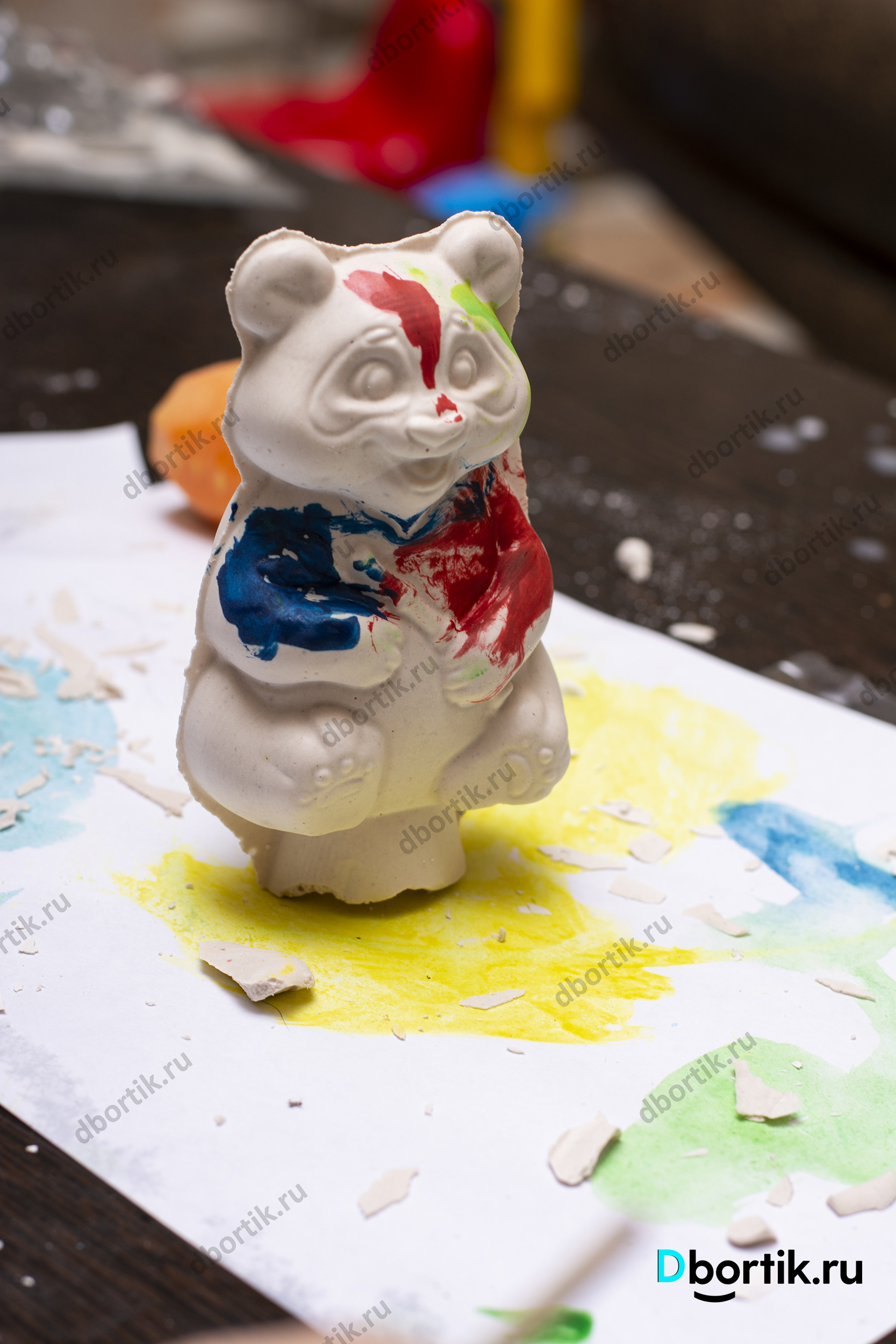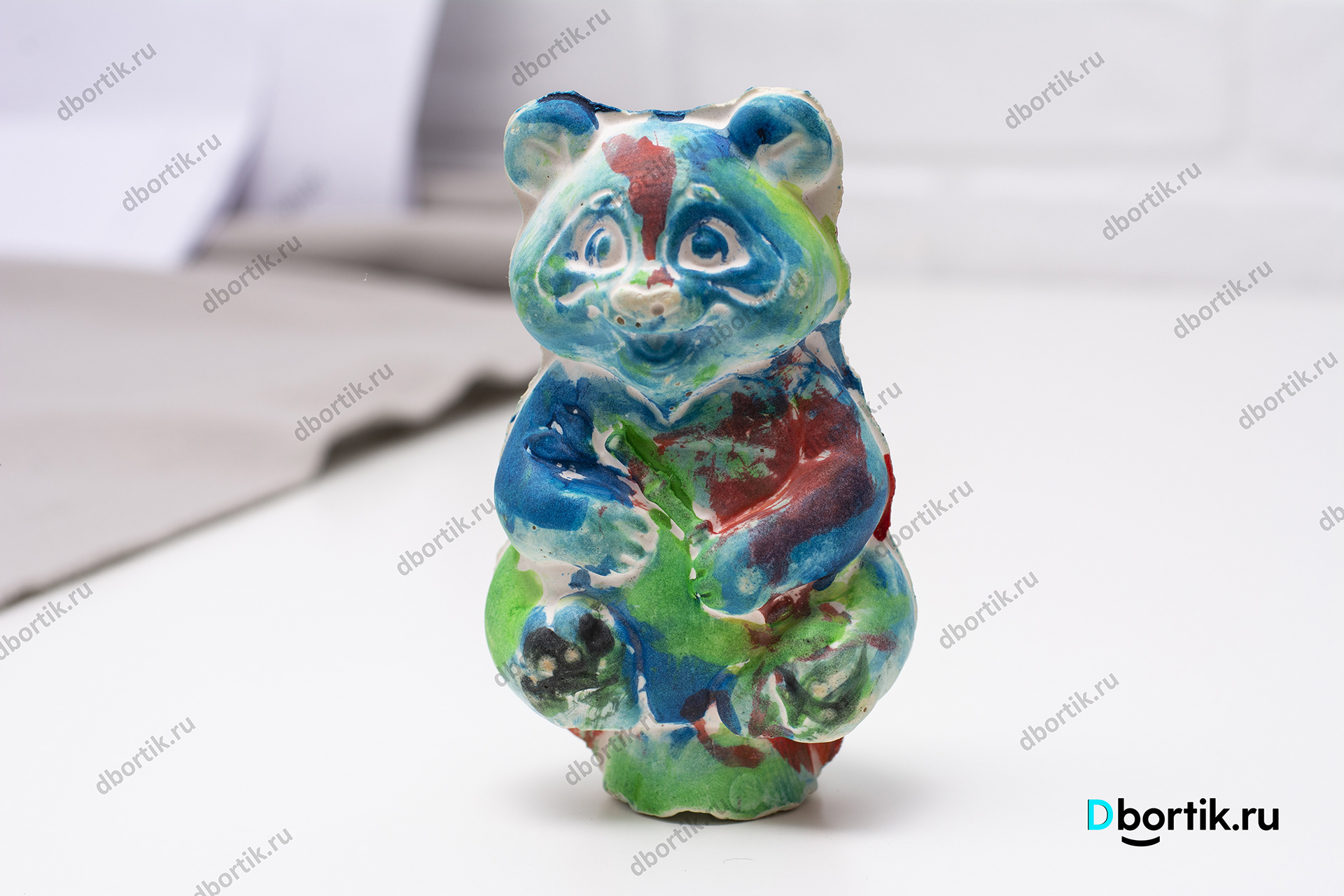 Мишка из детского творческого набора. Гипс залит в пластиковую форму. После высыхания разрисован акварельными красками. Интересная и увлекательная творческая работа для детей с родителями.